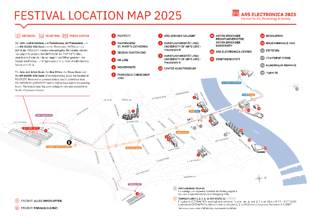 在歐洲的這幾年都有參加到每年九月位在奧地利林茲的電子藝術節(Ars Electronica Festival )。還記得第一年在計劃小旅行的時候,網路上幾乎只有時間久遠的林茲遊記,以提供參觀資訊為取向的文章幾乎不存在。1雖然對於每年參加,或跟著有經驗者一起參加的人而言,藝術節的資訊並不難獲得,但對於單純安排一兩天的遊客而言,可能需要花費大量的時間在網站裡搜索以獲得需要的資訊。雖然展覽的規畫年年變動,但記錄一下2023到2025年間的參觀資訊,以供未來有打算來藝術節玩耍的人們參考。